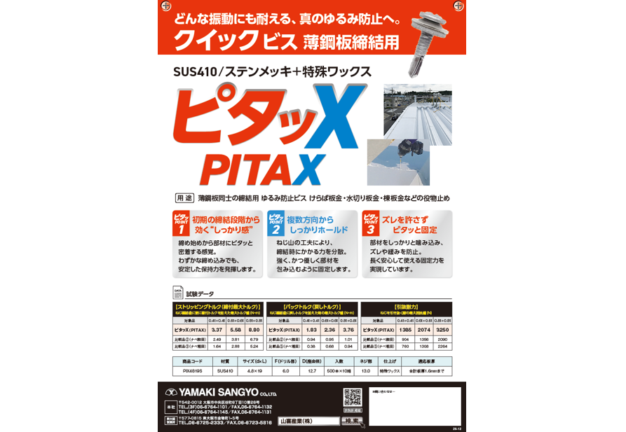 用 途:薄鋼板同士の締結用 ゆるみ防止ビス けらば板金・水切り板金・棟板金などの役物止め